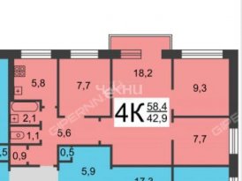 Площадь: 58.6/42.9/5.8 м²