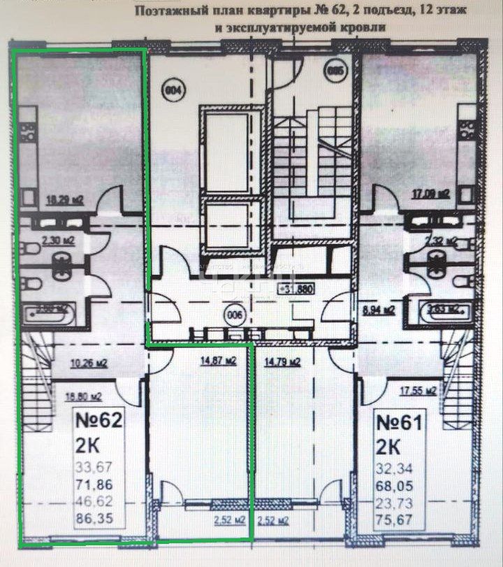 Площадь: 65.44/40/14 м²