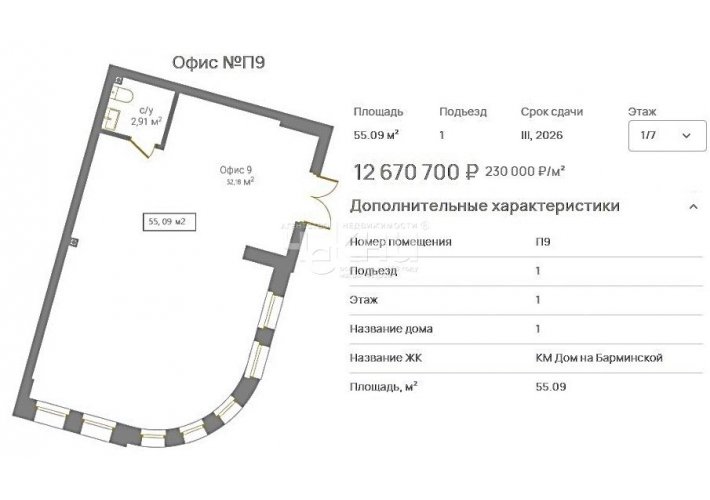 Предлагаем вашему вниманию рассмотреть прекрасный офис в элитном жилом комплексе КМ Дом на Барминской. Сдача дома запланирована на 3 квартал 2026 года, но строительство идет с опережением!