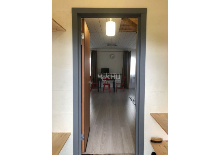 На первом этаже находятся кухня- гостиная (21,5 кв. м), комната, санузел с душевой кабиной (3,3 кв.м), гардеробная (3,9 кв.м), холл (4,4 кв.м).