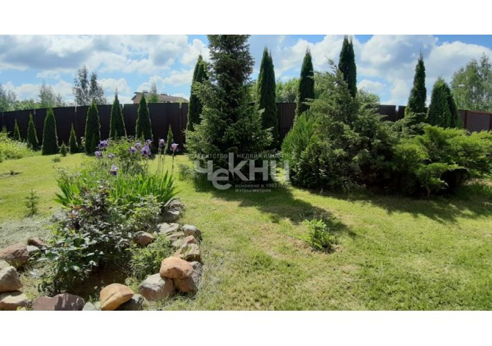 На участке уже есть хвойные и плодовые деревья, декоративные посадки, ухоженный газон территория выглядит живой и обжитой.