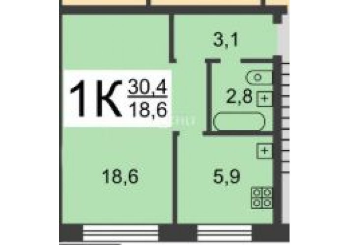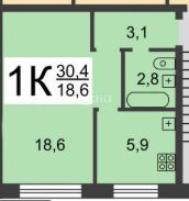 Кол-во комнат в квартире: 1