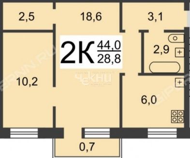 Площадь: 58.7/28.7/12.4 м²