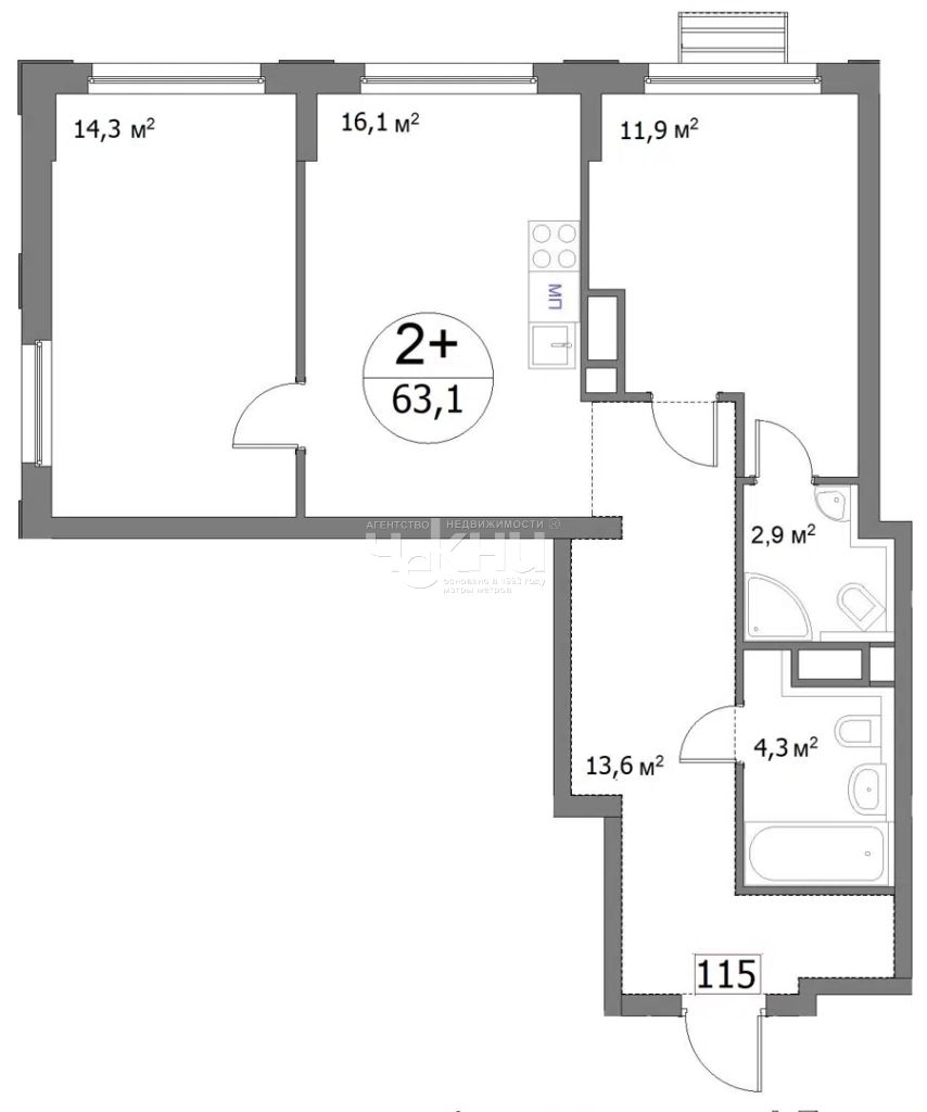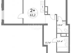 Площадь: 63.2/26.1/16.1 м²