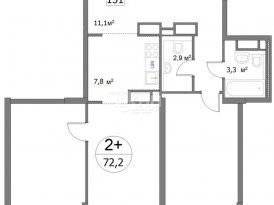Площадь: 72.2/32.1/15 м²