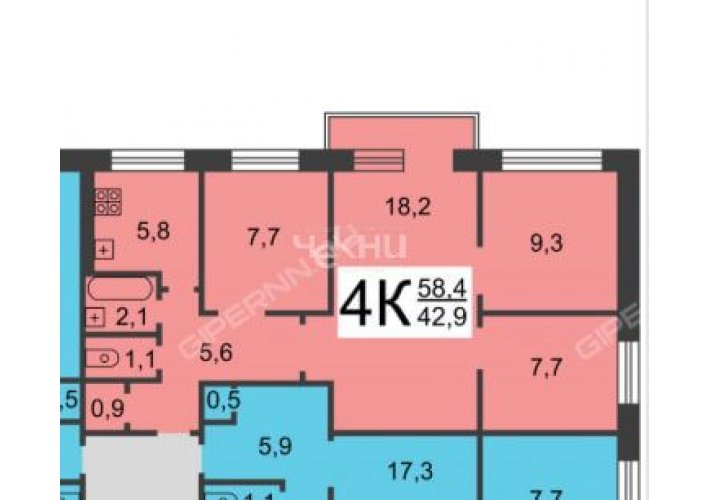 58.6/42.9/5.8 м²