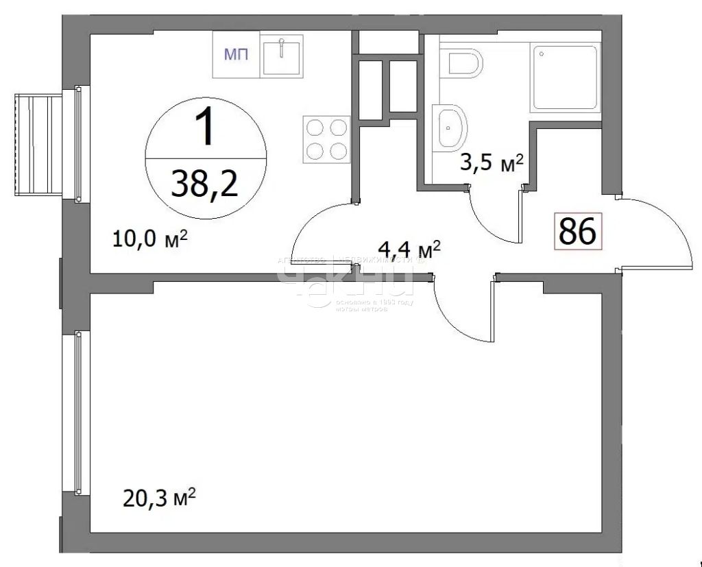 Кол-во комнат в квартире: 1