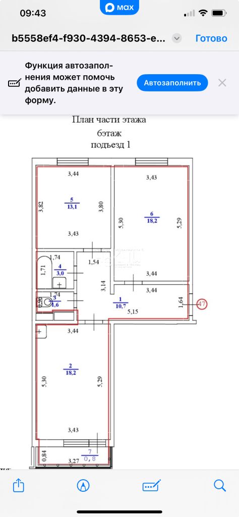 Площадь: 64.7/31.2/18.2 м²
