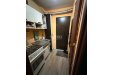 Прихожая и кухня совмещены кухня оснащена необходимой бытовой техникой, включая xoлoдильник и стиральную машину.