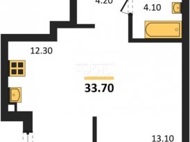 Площадь: 33.7/13.1/12.3 м²