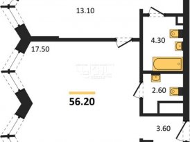 Площадь: 56.2/30.6/12 м²