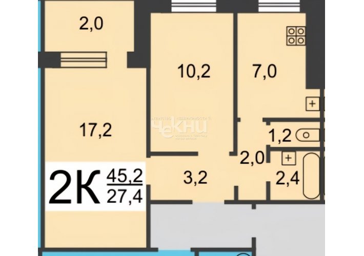 Кол-во комнат в квартире: 2