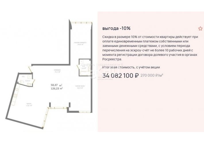 В настоящий момент действует акция: при 100% оплате или покупке квартиры в ипотеку вы получаете скидку 10%. Скидка по акции составит 3786900 руб.! Дом ещё строится, а значит, вы не только экономите, но и видите, куда вкладываете деньги.