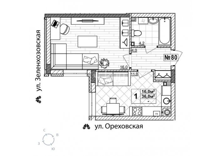 36/16/11.8 м²