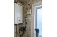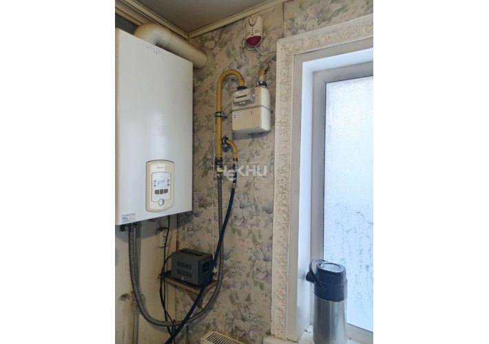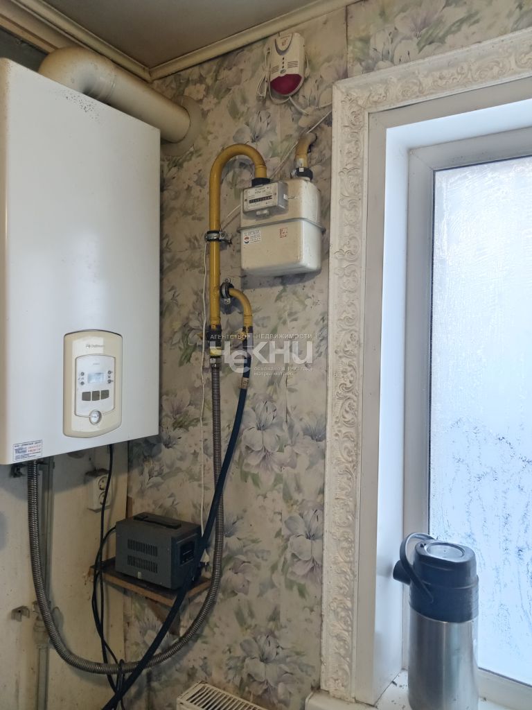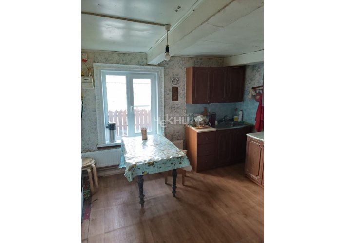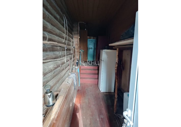 Крепкий бревенчатый на кирпичных столбах, высокие потолки, сухой чердак. Индивидуальный газовый двухконтурный котёл (отопление + ГВС)