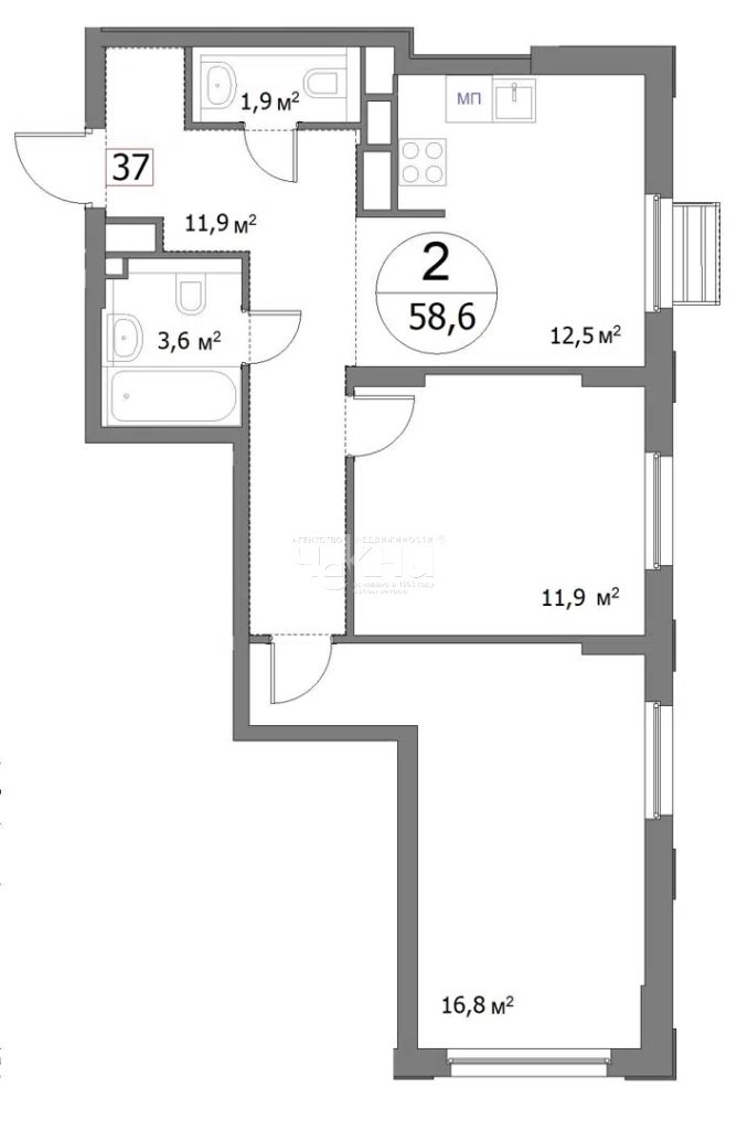 Кол-во комнат в квартире: 2