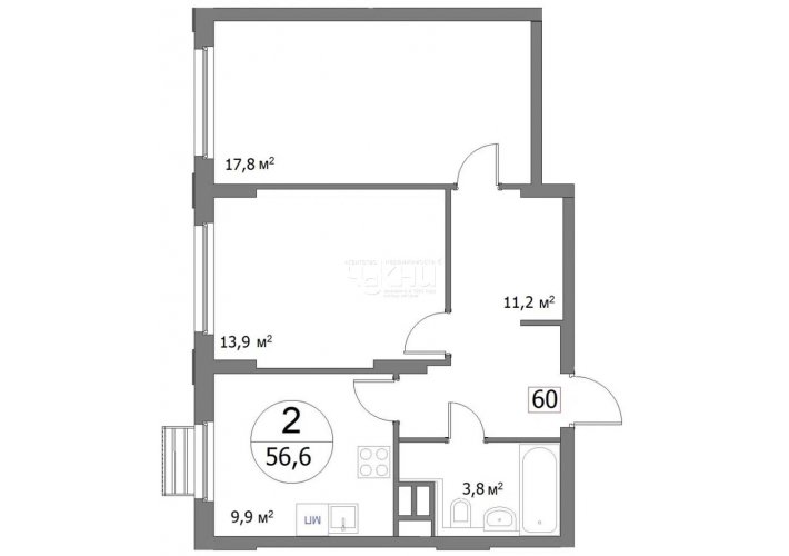 Кол-во комнат в квартире: 2