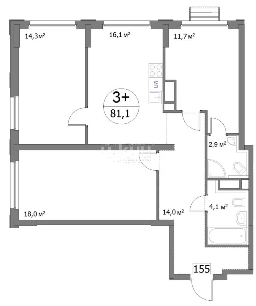 Кол-во комнат в квартире: 3