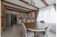 План дома: просторная кухня-гостиная с выходом на террасу, каминный зал, 3 спальни, 2 уборные, пострирочная, гардеробная, кладовая. На участке построены беседка и оборудованный стильный винокурный погреб. На участке выполнен ландшафтный дизайн, по периментру - металлическая ограда.