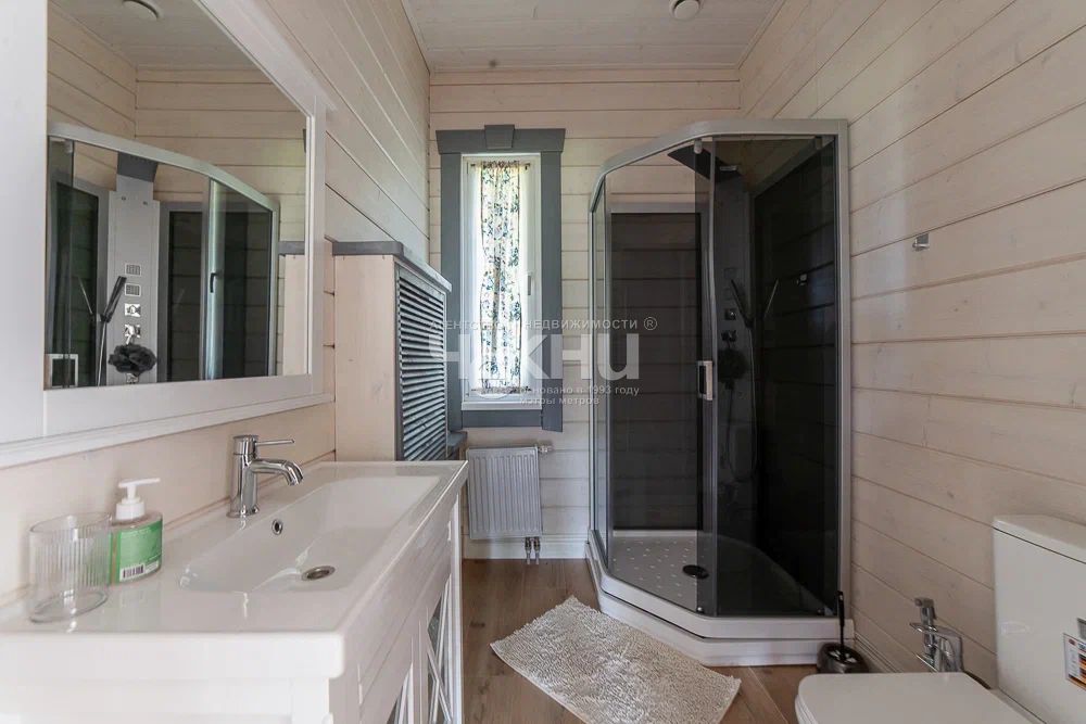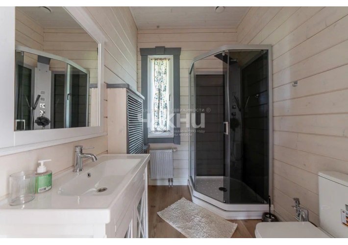 Домпостроен из клееного бруса фабричного производства. Выполнена качественная дорогая отделка.