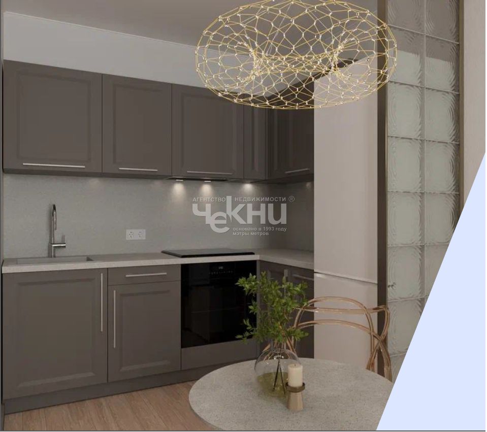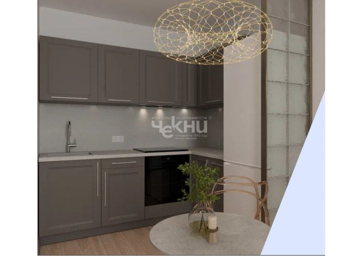 Кухня-гостиная 20,3 м (по плану) с готовым гарнитуром, варочной поверхностью и духовым шкафом