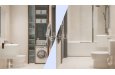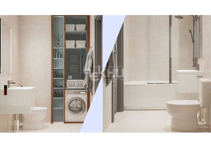 Ванная комната полностью укомплектована: акриловая ванна, тропический душ, унитаз, раковина с тумбой, зеркало