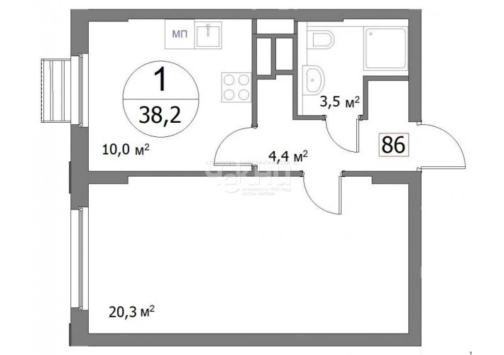 Площадь: 38/20/10 м²