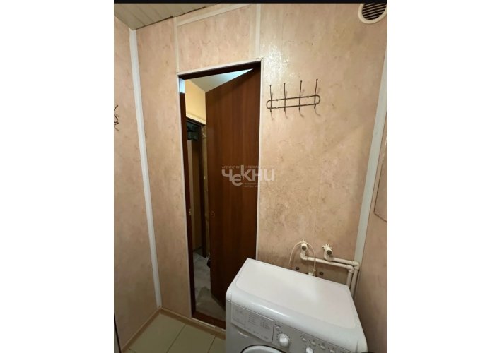 Прихожая и кухня совмещены кухня оснащена необходимой бытовой техникой, включая xoлoдильник и стиральную машину.