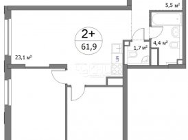 Площадь: 61.9/27.2/23.1 м²