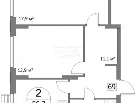 Площадь: 56.7/31.8/9.9 м²