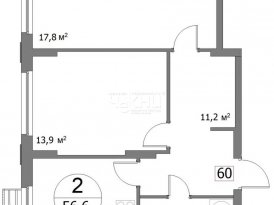 Площадь: 56.6/31.7/9.9 м²
