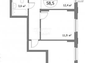 Площадь: 58.5/28.7/12.4 м²