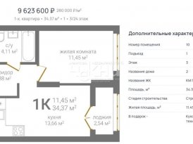Площадь: 34.37/11.45/13.66 м²